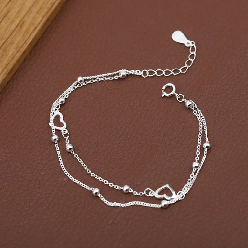 Elevate Your Style with Double Layer Love Heart Charm Bracelets