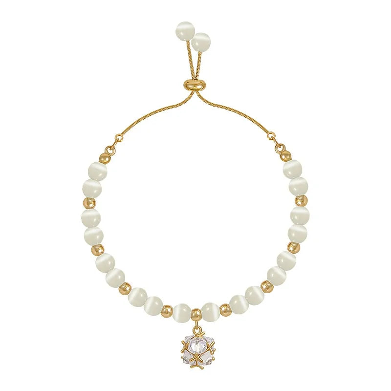 Each bracelet features a unique combination of opal charms, from dazzling crystals to delicate beads, creating a mesmerizing display of colors and textures. The adjustable design ensures a comfortable fit for any wrist size, making it a versatile accessory for all occasions.